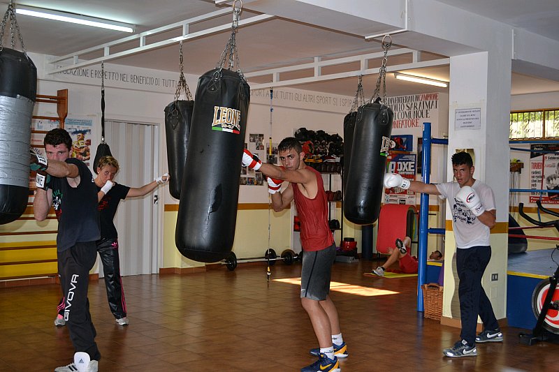 Atleti dell'ASD Pugilistica Merico impegnati in allenamento A sostenere Santo Merico nell'organizzazione della riunione, oltre ai gestori della Villa Nuovo Territorio, una serie di piccole aziende commerciali di Pulsano, i cui titolari hanno deciso di sostenere Luigi nel difficile cammino del professionismo. Fonte: Alfredo Bruno A.S.D. PUGILISTICA MERICO PULSANO |