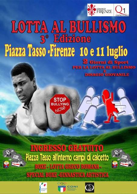 Il pugilato come strumento psico-pedagogico per combattere il disagio giovanileNuovo approccio allo sport ed al divertimentodi Cristiano Mazzoni Lotta al Bullismo 3^ edizione, due giorni di sport, 10 e 11 Luglio in Piazza Tasso a Firenze con Lotta Greco Romana, dibattito sulla tematica del Bullismo, disagio giovanile e violenza sulle donne -- 10 luglio dalle 21,30 Pugilato Femminile, 11 Luglio pugilato dilettanti maschile. Il progetto di organizzare per la terza volta in Piazza Tasso un evento sportivo, che racchiude alcune delle discipline da combattimento, vuole rendere partecipe la comunità su due tematiche importanti come la Lotta al Bullismo e il Disagio Giovanile.Visto il successo delle prime due edizioni, si è pensato di continuare con questo ambiziosi progetto proprio in una zona dove si cerca di controbattere il degrado urbano fiorentino con punti di accoglienza strategica nel territorio urbano. Il Pugilato nel contesto di disagio giovanile affronta tutte le difficoltà di socializzazione da parte dei giovani, spesso artefici di atti di violenza meglio conosciuti con il termine di “bullismo”. Le motivazioni che spingono i giovani a rendersi colpevoli di atti violenti scaturiscono prevalentemente in famiglia come espressione di un disagio non manifestato e che trova libero sfogo nella violenza, oppure come ripetizione di un modello comportamentale di riferimento fondato sulla sopraffazione. Il giovane, di fatto, non riesce più a liberare le proprie emozioni. Dunque lo sport in generale, il pugilato in particolare, diventa uno strumento psico-pedagogico per combattere il disagio giovanile e soprattutto educare nuove leve attraverso un cammino all’insegna del rispetto delle regole. Tale iniziativa vuole essere un appello ai valori dell’amicizia, ad un corretto approccio al divertimento, e alla serietà di crescere sani con lo sport. Fonte: Alfredo Bruno