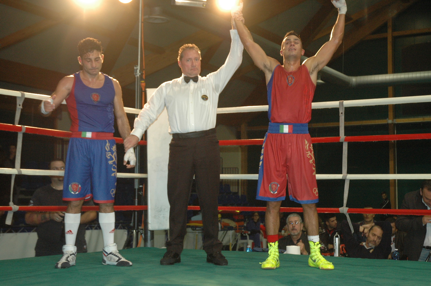 Semifinali e Finali Fase Regionale Lazio per gli Assolutidi Alfredo Bruno OSTIA, 15.11.2014 - Si sono disputate al Paladifiore di Ostia le semifinali del Torneo Laziale che designerà i partecipanti al Campionato Italiano Assoluto che si disputerà dal 3 all’8 dicembre a Gallipoli e Ugento. La serata, ben organizzata dalla Boxe Academy, ha visto lo svolgimento di ben 15 match alla presenza di un discreto pubblico nonostante la giornata inclemente. Lo spettacolo è stato più che buono, e non poteva essere altrimenti visto il valore degli atleti. Ci sono state tre finali dei gruppi sportivi militari. Gasparri superava di un soffio Cipriano, che aveva condotto all’attacco i primi due round ma con scarsi risultati per perforare l’attenta difesa del pugile di Tarquinia. Il match si ravviva decisamente nel terzo round con veloci scambi, pochi i colpi a segno, ma il più preciso appare Gasparri. Stefano Gasparri batte Ciro Cipriano Non è facile battere un atleta imprevedibile come Punzio, pericoloso nelle sue improvvise serie. Marziali ormai ha un’esperienza consumata in tante battaglie con i migliori. Il match si svolge con capovolgimenti di fronte per due round, al termine dei quali Marziali sembra più in fiato e lo dimostra nel terzo round dove lui buon tecnico accetta lo scambio e vince di misura. Alessandro Marziali supera Andrea Punzio Perugino acquista sempre più sicurezza nei propri mezzi e si muove con disinvoltura sul ring. Valentino, fisico possente, se la gioca essenzialmente sulla potenza del destro, che arriva a segno nel terzo round, ma è un fuoco di paglia di fronte alla boxe più varia di Perugino, che vince il derby della Campania. Giuseppe Perugino vincitore di Riccardo Valentino Per le semifinali iniziano i 60 kg. Traversi contro Nocera mette sul piatto della bilancia la sua potenza, ma non è sufficiente di fronte alla boxe più fantasiosa e varia dell’avversario, che vince chiaramente anche per un richiamo fatto subire all’avversario nel secondo round. Riccio deve gettare sul ring tutta la sua esperienza per frenare l’inesauribile aggressività di Fernandes. L’allievo di Mattioli ha dalla sua parte una maggiore precisione e accetta nel finale uno scambio al cardiopalma che rafforza la sua vittoria. Nei 64 kg. si svolge il match più spettacolare della serata e forse del Torneo. Mendizabal è una certezza della nostra boxe, mentre Ambrosi nell’ultimo anno ha messo in mostra notevoli miglioramenti, soprattutto come efficacia e continuità. Lo Mendizabal show inizia subito con un ritmo forsennato che non concede con spostamenti laterali il bersaglio ad un avversario che spesso va a vuoto. Non c’è un attimo di pausa: Mendizabal esce e rientra con serie di tre-quattro colpi contro Ambrosi sempre pericoloso con la sua caparbia aggressività, che le prova tutte spolverando anche un insidioso montante destro dalla corta distanza. Verdetto meritato a Mendizabal e applausi per tutti e due. Il match tra Mazzali e Balanenko, inizia con un colpo di scena quando uno “stretto” gancio destro trova impreparato un Mazzali d’attacco che va al tappeto. L’allievo di Mattioli e Ascani fa virtù di questa esperienza girando a destra e scambiando centralmente. L’ equilibrio dura due riprese, ma nella terza il forcing di Mazzali dà i suoi frutti contro un Balanenko sempre pericoloso, ma in affanno di fronte ad un avversario inesauribile che vince. Nei 69 kg. Bianconi in guardia destra affida al sinistro la soluzione del match contro Geografo, ma non è certo sufficiente ad aver ragione di un pugile completo come l’allievo di Prestipino. Geografo mantiene l’iniziativa per buona parte del match, ma concede qualche spazio al sinistro di Bianconi, anche se ottiene con sicurezza il successo. Francesco Sarchioto passa con disinvoltura dagli Youth agli Elite senza risentirne, anzi acquistando una sorprendente maturità che lo fa ben ragionare. Il pugile di Anzio tiene il centro del ring contro Ventura, pericoloso nelle sue rabbiose quanto improvvise serie. Sarchioto rischia quando si avventura nello scambio, ma ottiene buoni risultati con i suoi diretti, con i quali crea una barriera inavvicinabile per Ventura. Nei 75 kg. match al veleno tra Francesco Faraoni e Izzi. Quest’ultimo disputa un ottimo primo round, ma si fa prendere sul tempo dall’avversario che aumenta il ritmo nel secondo round e lo costringe, si fa per dire, a subire un richiamo per la testa. Il match diventa cattivo anche per una ferita allo zigomo sinistro di Faraoni che richiede per due volte l’intervento del medico. Izzi ci mette foga ma non accetta il secondo richiamo, sempre per la testa, per protesta si toglie un guantone e viene squalificato. Di Filippo più mobile di Vescera raccoglie buoni frutti grazie anche alla velocità dei suoi colpi. Vescera cerca la soluzione di forza, ma viene tolto di gara al terzo round per una brutta ferita al sopracciglio. Tocca quindi agli 81 kg. con la partenza a razzo di Nodaro contro Gabriele Guainella, che viene pescato anche da un buon gancio destro. Il round di mezzo è più equilibrato con Guainella che carica i suoi colpi e Nodaro con una ragnatela dalla corta distanza cerca di togliere spazio. Guainella termina il round con una ferita. A proposito di ferite, cominciano a diventare una prassi comune. Il terzo round è quello decisivo e lo si vede dagli scambi convulsi. Il verdetto va a Guainella, apparso più consistente nel finale. Tocca quindi a Matteo Guainella che se la deve vedere contro un elemento interessante come Casella, che sta bruciando le tappe. L’allievo di Maggi bombarda il suo avversario alle corde, ma è una quantità sterile per la guardia raccolta del pugile di Ariccia, che a sua volta quando esce dall’assedio arriva a segno con efficacia e precisione. Il refrain del match è tutto qui e per Casella in finale ci sarà un altro Guainella. I 91 kg. iniziano con una sorpresa. Barsotti se la vede con D’Ortenzi, avversario che