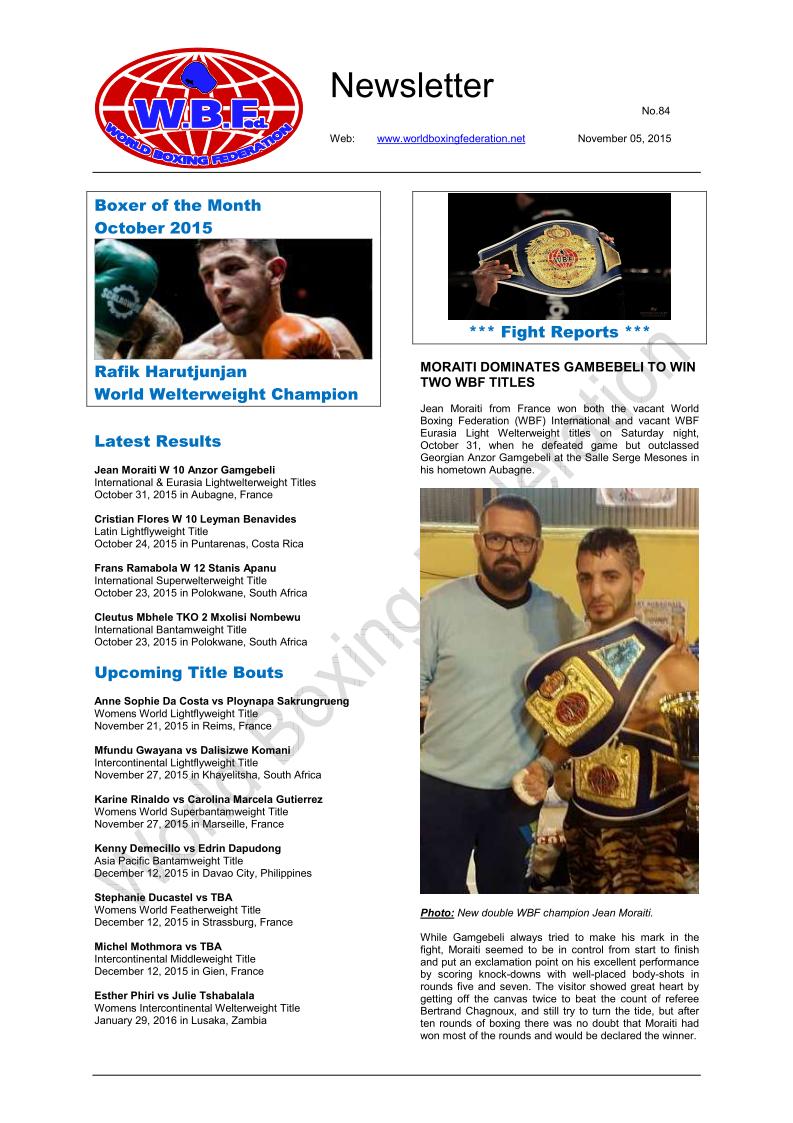 EURO RESULTS By Per-Ake Persson Oct 26, Weurt, NTH: c: Elaige Camara, Nth KO 1 Mikheil Khutsishvili, Geo sl: Bryan Nisia, Nth KO 1 Nika Kokashvili, Geo ...
