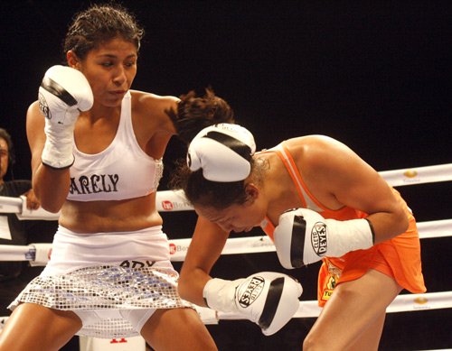 En el segundo round, Arely estuvo en problemas al ser sorprendida con un duro golpe de derecha que la hizo encaminarse a la lona, pero tras tocar su rodilla la superficie valientemente se incorporó para seguir en un candente intercambio de golpes que pusieron a la afición de pie. No hubo un sólo instante en el que estas dos boxeadoras no tiraran golpes con ambas manos, en una verdadera pelea de poder a poder.