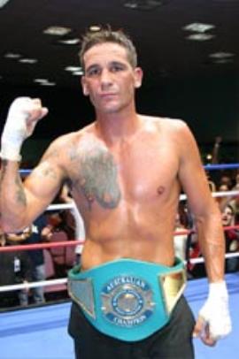 Professional record| | | 2001 | | Date | Opponent | Place | Result | | + Aug. 17 | Mario Terre | Sydney, Australia | TKO 2 | | + Sept. 3 | David Picknell | Wollongong, Australia | W 4 | | = Nov. 16 | Jason Arena | Sydney, Australia | Draw 4 | | + Nov. 30 | David Picknell | Sydney, Australia | W 6 | | | | 2002 | | Date | Opponent | Place | Result | | + Mar. 4 | Danny Wilson | Broadbeach, Australia | W 6 | | - June 14 | Sande Kizito | Sydney, Australia | L 4 | | (inactive) | | | | | 2003 Inactive | | | | 2004 | | Date | Opponent | Place | Result | | + Feb. 13 | Frankie De Milo | Southport, Australia | W 8 | | + July 16 | Kongdej Sithtrajtrakan | Penrith, Australia | KO 2 | | = Oct. 1 | Daniel Hoskins | Southport, Australia | Draw 6 | | | | 2005 | | Date | Opponent | Place | Result | | - Mar. 18 | Frankie De Milo | Southport, Australia | LDQ 6 | | (For vacant Australian Super-Bantamweight Title) | | + July 22 | Shane Green | Southport, Australia | TKO 3 | | + Nov. 11 | Robert Oyan | Red Hill | W 8 | | | | 2006 | | Date | Opponent | Place | Result | | - June 16 | Robert Oyan | Chandler | L 6 | | * Dec. 1 | Mohammed Elomar | MansfieldAustralia | NC 3 | | (For vacant Australian Featherweight Title) | | | | 2007 | | Date | Opponent | Place | Result | | + Feb. 16 | Mohammed Elomar | Chermside | WDQ 7 | | (Won vacant Australian Featherweight Title) | | + Nov. 23 | Kane Buckley | Brisbane, Australia | W 6 | | - Dec. 16 | Jackson Asiku | Mt Claremont, Australia | TKO by 4 | | (Lost Australian Featherweight Title and | | | | 2008 | | Date | Opponent | Place | Result | | + June 6 | Lowen Hardy | Gold Coast, Australia | W 6 | | - Sept. 10 | Sedat Tasci | Broadbeach, Australia | TKO by 4 | | - Nov. 28 | Mick Shaw | Mansfield, Australia | L 6 | | | | 2009 | | Date | Opponent | Place | Result | | - May 15 | Will Tomlinson | Sunshine, Australia | TKO by 5 | | (For vacant Australian Super-Featherweight Title) | | | | | 2010 Inactive | | | | 2011 | | Date | Opponent | Place | Result | | + June 18 | Kongthawat Sorkitti | Fortitude Valley, Australia | W 6 | | | | 2012 | | Date | Opponent | Place | Result | | - Mar. 2 | Joel Brunker | Mansfield, Australia | L 8 |
