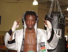 Professional record | 2001 | Date | Opponent | Place | Result | + Feb. 10 | Dan Fynn | Accra, Ghana | TKO 2 | + July 27 | Olympio Napoles | Accra, Ghana | TKO 1 | + Dec. 28 | Mohammed Kabiru | Accra, Ghana | TKO 2 | | 2002 | Date | Opponent | Place | Result | + Feb. 23 | Smith Odoom | Accra, Ghana | TKO 10 | Ghanaian Super Featherweight Title | + May 25 | Jimmy Gould | Portsmouth, Great Britain | TKO 3 | + Sept. 6 | Kodjo Gbossou | Accra, Ghana | TKO 6 | + Nov. 23 | Rakhim Minhalieyev | Derby, Great Britain | W 4 | | 2003 | Date | Opponent | Place | Result | + June 13 | Kaizer Mabuza | Accra, Ghana | TKO 2 | + Dec. 26 | Alex Brew | Accra, Ghana | KO 4 | | 2004 | Date | Opponent | Place | Result | + May 15 | Rashaan Abdul Blackburn | Pittsburgh, United States | TKO 4 | - June 5 | Almazbek Raiymkulov | Las Vegas, United States | KO by 1 | + Oct. 14 | Jeff Coyle | Pittsburgh, United States | TKO 1 | + Nov. 5 | Rogelio Barron | Cicero, United States | KO 6 | + Nov. 24 | Jadschi Green | Pittsburgh, United States | TKO 1 | | 2005 | Date | Opponent | Place | Result | + Apr. 15 | Reggie Nash | Cranberry, United States | TKO 2 | + June 10 | Donnell Logan | Verona, United States | KO 1 | + Oct. 26 | Marty Robbins | Washington, United States | W 8 | | 2006 | Date | Opponent | Place | Result | + May 3 | Steve Quinonez | Cathedral City, United States | W 8 | + Aug. 5 | Frank Houghtaling | Pittsburgh, United States | TKO 4 | + Oct. 20 | Justo Sanchez | Youngstown, United States | TKO 6 | + Nov. 17 | Ramazan Paliani | Philadelphia, United States | TKO 8 | vacant USA Pennsylvania State Lightweight Title | | 2007 | Date | Opponent | Place | Result | + Aug. 4 | Luis Bolano | Erie, United States | KO 1 | + Oct. 30 | Francisco Campos | Pittsburgh, United States | TKO 2 | | | 2008 Inactive | | 2009 | Date | Opponent | Place | Result | + Aug. 15 | Marteze Logan | Biloxi, United States | TKO 5 | | 2010 | Date | Opponent | Place | Result | + Apr. 3 | Angel Hernandez | Las Vegas, United States | TKO 2 (2:59) | vacant WBC United States (USNBC) Super-Lightweight Title | | 2011 | Date | Opponent | Place | Result | + Mar. 4 | Freddie Norwood | Lake Buena Vista, United States | W 10 | - May 7 | Mike Alvarado | Las Vegas, United States | TKO by 3 | vacant WBC Continental Americas Super-Lightweight Title | | | 2012 Inactive | | 2013 | Date | Opponent | Place | Result | + June 14 | Ronald Cruz | Bethlehem, Pennsylvania | W 10 | - Aug. 2 | Ray Robinson | Newark, New Jersey | TKO by 7 | vacant USBA Welterweight Title | - Oct. 11 | Jessie Vargas | Las Vegas, Nevada | L 10 | | 2014 | Date | Opponent | Place | Result | - Apr. 16 | Chris van HEERDEN | Santa Monica, California | L 10 | - Oct. 1 | Fredrick Lawson | Santa Monica, California | L 10 UD |
